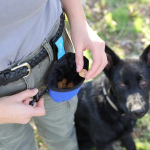 A Chuckit!® Treat Tote is a small pouch that carries a handful of your dog’s favorite treats. This treat tote makes reward-based training simple and right at your hip level. A drawstring closure secures treats inside and opens easily with one hand. It clips onto a belt or pocket and keeps treats accessible.