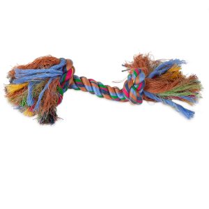 Multi-colored Booda® 2-Knot Rope Bones can be used for interactive play or as solo dog chews. These rope bones are a fun and easy way to floss your dog’s gums and help prevent dental disease by fighting plaque and control tartar. They feature machine washable, tightly twisted cotton for long-lasting durability.