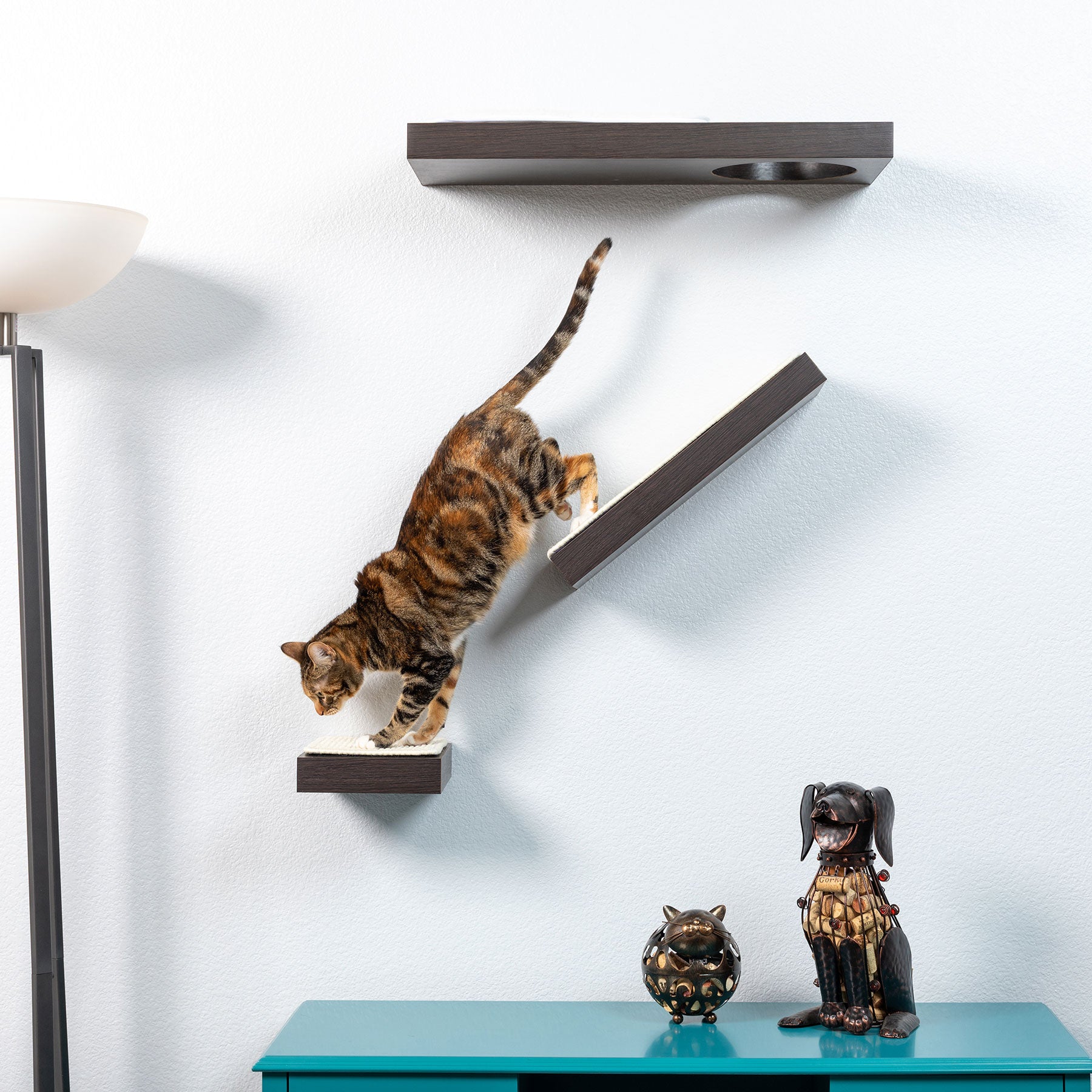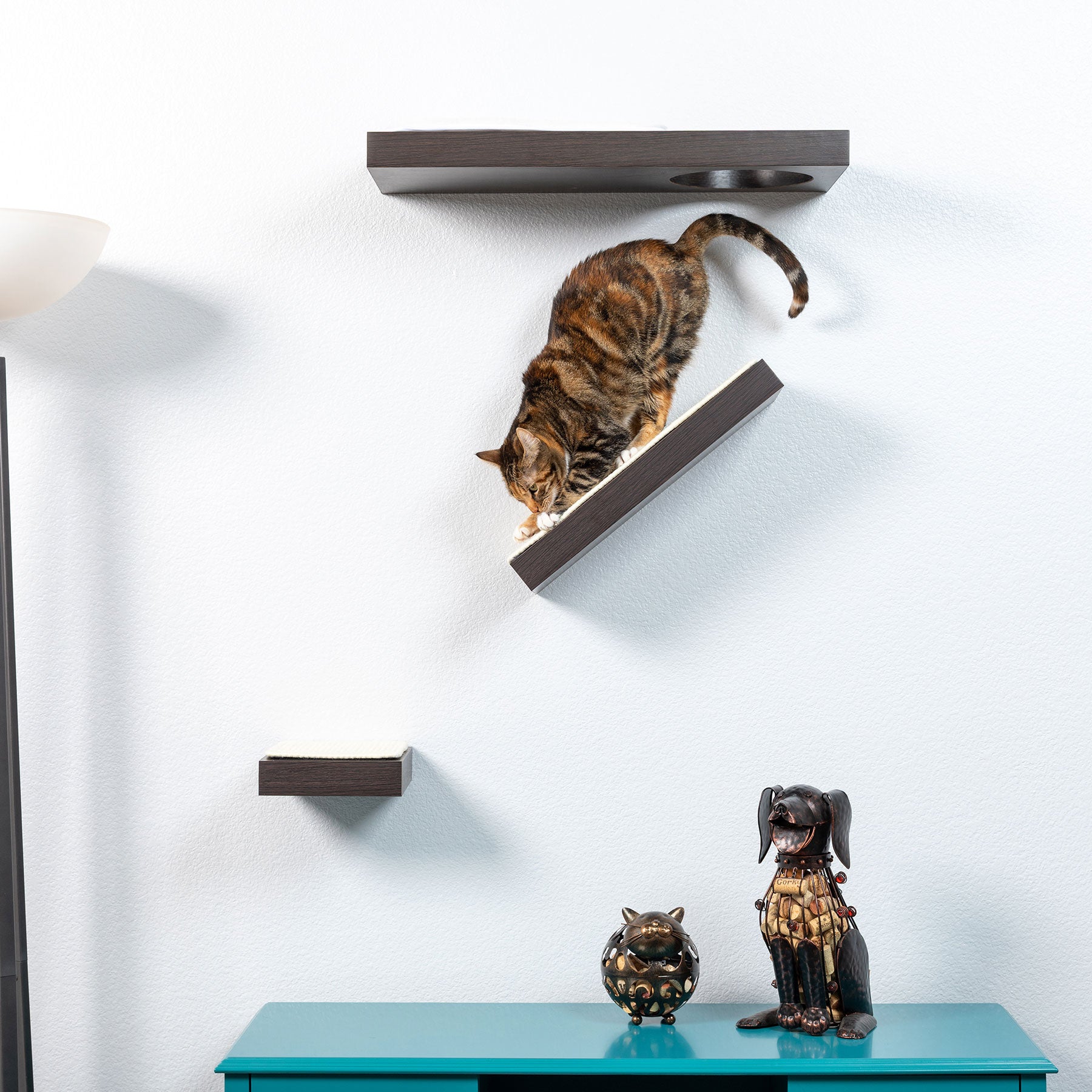 Provide your cat more chances to play, lounge, and scratch while enjoying your home decor with PetFusion Wall Activity Shelves. These shelves are ideal for cats who love to climb and perch up high, offering stimulation for both young kittens and older cats. They are easily wall-mounted and securely attached to ensure a safe environment for children and cats. The package includes zinc drywall anchors installed with a hammer and screwdriver and removed quickly with a screwdriver. Drilling is not required unless you anchor into studs or have plaster walls�the estimated total assembly time is 20 minutes. The premium E0 grade MDF complies with formaldehyde safety regulations.