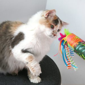 The Quirky Kitty® Peek & Pounce WandTM features a unique hide-and-seek style wand. Hide the playful feathers and ribbons in the colorful tube, then pop them out again for your cat to hunt and seek. This wand helps to engage your cat’s instincts to hunt and chase with this interactive Peek & Pounce WandTM. Peek the feathers and ribbons out to entice a cat, then retract them back into the tube when they go to pounce.